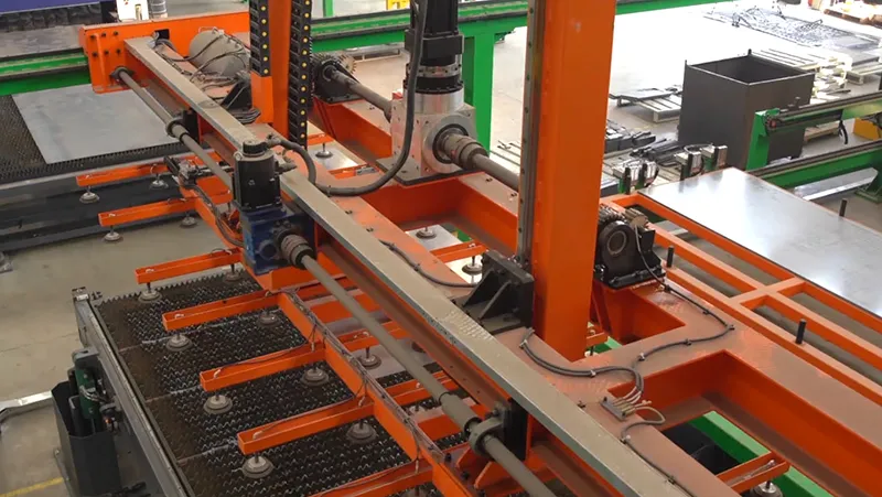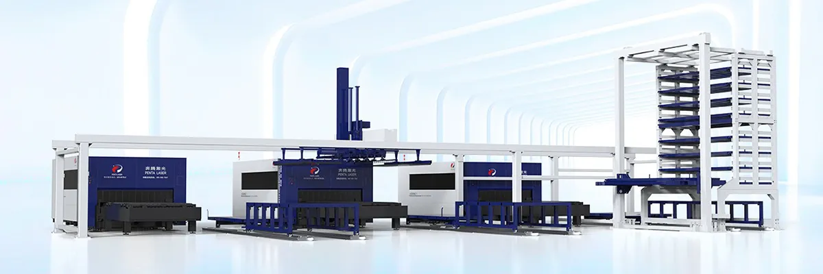 高次元な自動化ソリューションを提供するために、当社は材料搬入から端材搬出までの工程を自動化するファイバーレーザ切断機を開発しました。自動仕分けシステムを付いて、手間のかかる仕分け作業を不要で、人工を大幅に削減し、効率を大幅に向上します。素材や製品を保管するストッカー棚を備えており、最大5トンの材料をサポートするように設計されています。長時間の自動運転にも対応できる。また、台車を増設し、完成品のスムーズな搬送を実現しています。